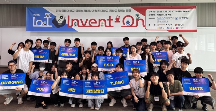 | ▲ 경상국립대학교(GNU) 공학교육혁신센터는 7월 15~18일 KB인재니움 사천연수원에서 경상국립대·부산대·국립부경대 공학계열 학생 42명을 대상으로 ‘2025 사물인터넷 인벤톤(2025 IoT Invent-On) 프로그램’을 개최했다. |
