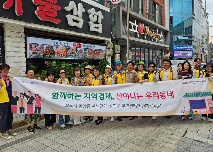 [파이낸셜경제=김예빈 기자] 여수시 중앙동은 지난 7일 자생단체, 상인회와 함께 좌수영음식문화거리와 진남상가 일대에서 ‘우리동네 상가 이용하기’ 캠페인을 전개하며 지역경제 활성화에 나섰다.