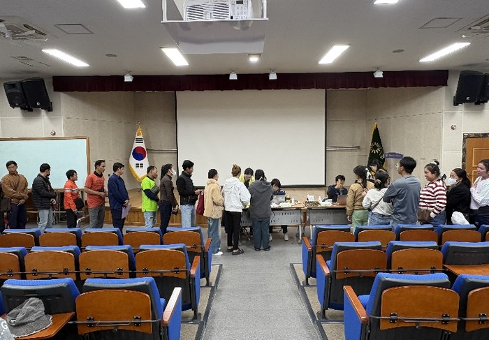 | ▲ 화순군농업기술센터 대강당에서 진행된 외국인 계절근로자 지문등록 진행 모습 |