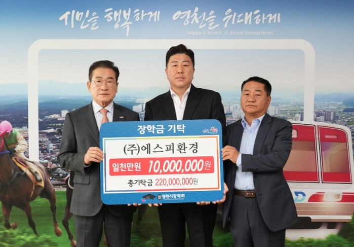 [파이낸셜경제=김지훈 기자] 영천시는 21일 ㈜에스피환경에서 장학금 1,000만원을 영천시장학회에 기탁했다고 밝혔다.