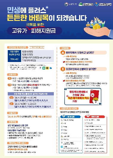 [파이낸셜경제=김지훈 기자] 대구 중구는 중동전쟁 발 고유가·고환율·고물가로 인한 구민의 경제적 부담을 덜고 취약계층을 지원하기 위해 ‘고유가 피해지원금’ 신청을 접수한다.