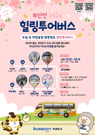 특히 지난해 참가자들로부터 좋은 반응을 얻은 야간투어를 올해도 기획투어로 운영한다. 기획투어는 5월 연등문화제와 연계한 야간투어와 9월 감성힐링투어로 구성되며, 부산진구만의 특색과 시기별 관광콘텐츠를 반영한 체험형 코스로 운영된다. 올해 힐링투어버스는 정규투어 30회, 기획투어 11회 등 총 41회 운영한다.