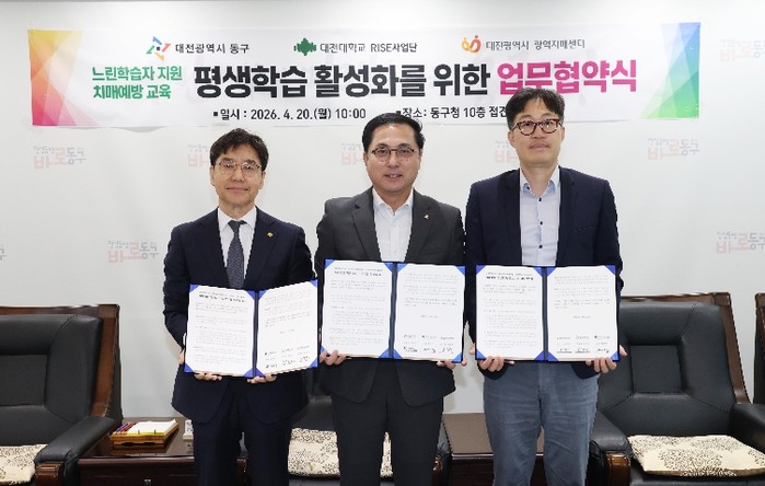 박희조 동구청장은 “이번 협약은 평생학습을 통해 지역의 복지와 건강 문제를 함께 해결해 나가는 협력 모델”이라며 “앞으로도 유관기관과의 연계를 강화해 주민 삶의 질을 높이는 실효성 있는 정책을 지속적으로 확대해 나가겠다”고 말했다.