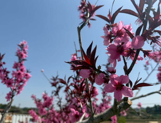 활짝 핀 개복숭아 꽃들을 배경으로 주민들이 직접 준비한 풍물놀이, 난타, 민요 등 공연이 방문객들을 맞이했다.