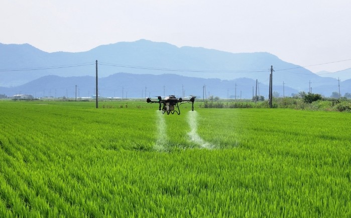 | ▲ 무인헬기를 활용해 벼 병충해 방제작업을 하고 있다 |