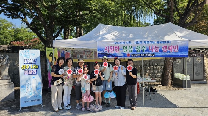 [파이낸셜경제=김예빈 기자] 남원시여성단체협의회(회장 이은진)는 지난 2일 남원 주요 관광지인 광한루에서 방문객을 대상으로 남원의 매력을 알리고 쾌적한 관광 환경 조성에 기여하고자 얼음생수 무료 나눔 행사를 개최했다.