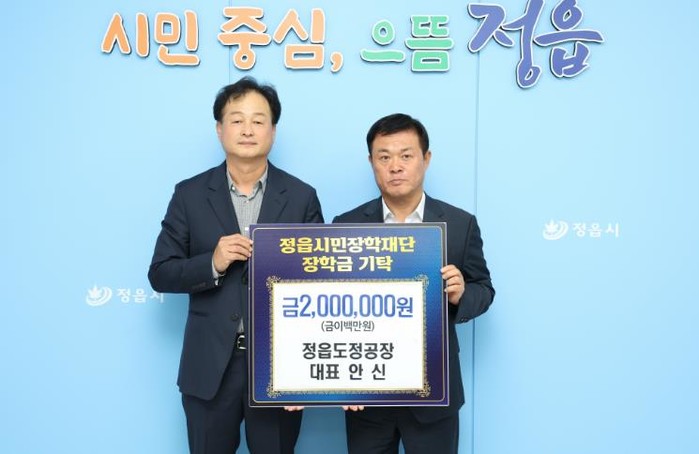 [파이낸셜경제=김예빈 기자] 정읍도정공장 안신 대표는 18일 지역의 미래를 이끌 청소년들을 위해 장학금 200만원을 정읍시민장학재단에 기탁했다.