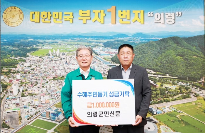 [파이낸셜경제=김예빈 기자] 의령군은 의령군민신문 양종철 대표가 5일 군청을 찾아 수해 복구에 써달라며 성금 100만원을 기탁했다고 밝혔다.