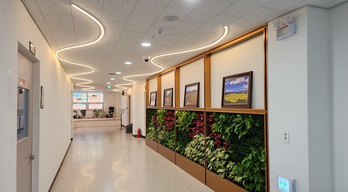 [파이낸셜경제=조성환 기자] 철원군은 7월에 조성한 와수복합어울림센터 4층 작은영화관 실내정원의 큰 호응에 힘입어, 2층 프로그램실 간 복도에 유휴공간을 활용하여 추가로 수직 정원 조성을 완료했다고 28일 밝혔다.