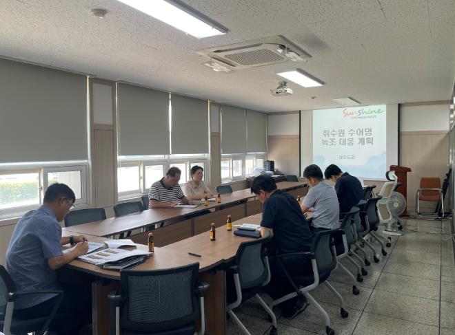 | ▲ 폭염에 수어댐 녹조 확산…광양시, 정수처리공정 강화 등 적극 대응 - 상수도과(녹조 확산 대응을 위한 회의) |