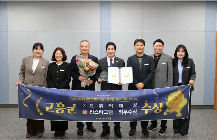 [파이낸셜경제=김예빈 기자] 고흥군(군수 공영민)은 지난 11월 26일 서울 한국프레스센터 국제회의장에서 열린 ‘제11회 2025 올해의 SNS 대상’ 시상식에서 트위터 부문 대상과 인스타그램 부문 최우수상을 수상했다고 밝혔다.