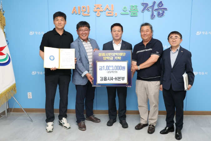 [파이낸셜경제=김예빈 기자] 정읍시4-H본부는 4일 한마음대회에 보내준 지역사회의 성원에 보답하고자 장학금 100만원을 정읍시민장학재단에 기탁하며, 미래세대 인재 육성에 따뜻한 뜻을 전했다.