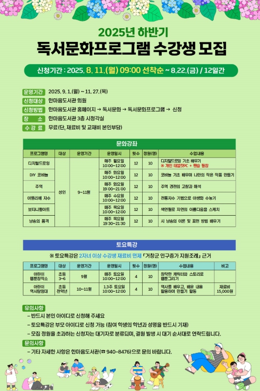 | ▲ 거창군 한마음도서관 하반기 독서문화 프로그램 수강생 모집 |