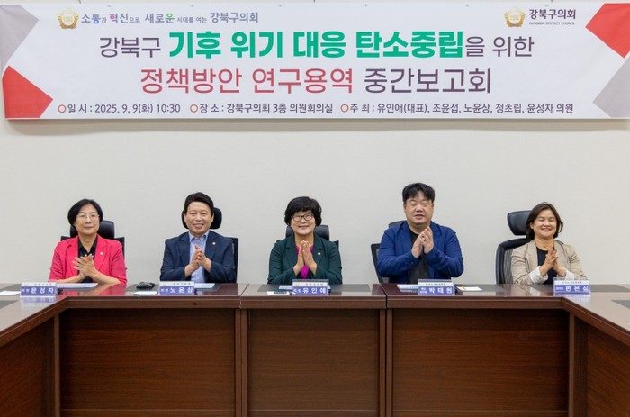[파이낸셜경제=김예빈 기자] 강북구의회 의원연구단체인 ‘강북구 기후위기 대응 탄소중립을 위한 연구회’ (대표의원 유인애)는 지난 9월 9일 의회 3층 의원회의실에서 중간보고회를 열었다.