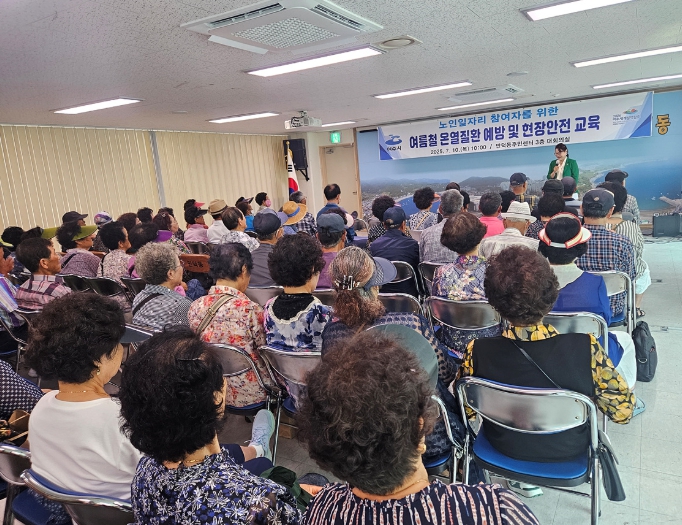 | ▲ 지난 10일 노인일자리 사업 참여자 120명을 대상으로 혹서기 대비 온열질환 예방 및 현장 안전교육을 실시했다 |