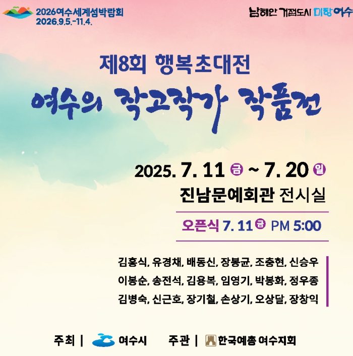 [파이낸셜경제=김예빈 기자] 여수시가 오는 11일부터 20일까지 진남문예회관 전시실에서 ‘제8회 행복초대전’을 개최한다.