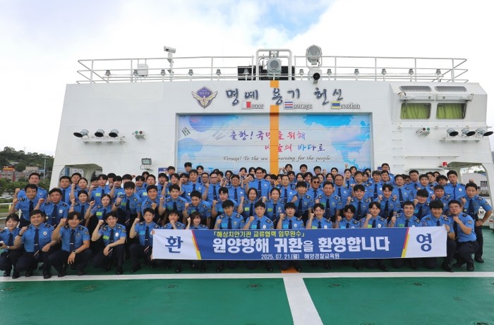 [파이낸셜경제=김예빈 기자] 해양경찰교육원은 21일 오전 실습함인 바다로함이 25일간의 말레이시아 원양항해 실습을 마치고 여수 신항 부두로 입항했다고 밝혔다.