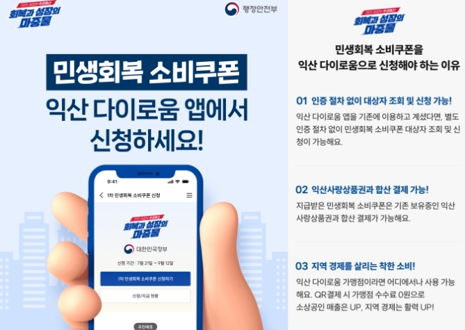 정헌율 익산시장은 "이번 민생회복 소비쿠폰이 어려운 지역 골목상권 곳곳에 활력을 불어넣는 마중물이 되기를 간절히 기대한다"며 "신청부터 사용까지 모든 과정에서 시민 불편이 발생하지 않도록 최선을 다하겠다"고 말했다.