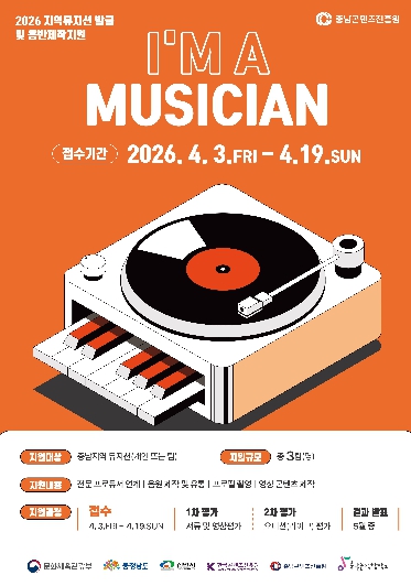 [파이낸셜경제=김영란 기자] 충남콘텐츠진흥원이 운영하는 충남음악창작소는 충남 지역 뮤지션들에게 음반 제작부터 발매·유통까지 종합적인 지원을 제공하는 ‘I AM A MUSICIAN’ 프로젝트를 2026년에도 추진한다.