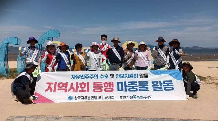 | ▲ 한국자유총연맹 부안군지회, 변산해수욕장 환경정화 활동 전개 |