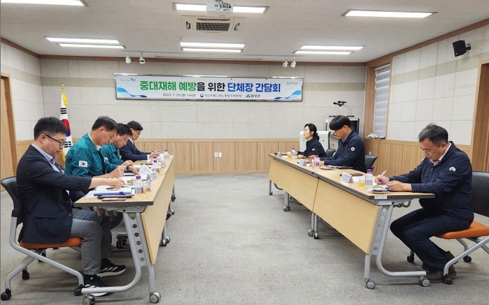 이날 간담회에서는 △이장단의 협조를 통한 농촌지역 폭염 안전 수칙과 소규모 건설 현장 근로자 안전조치 등 전파 △ 태양광 및 주택 수리 공사 시 인허가부서 추락 방지 홍보 △ 임업, 풀베기 작업 등 고위험 지자체 발주 공사 시 사전교육 철저 등 등 다양한 방안을 논의하며 실질적인 재해 예방 방안을 모색했다.