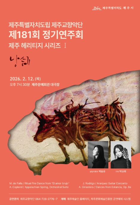 채경원 문화예술과장은 “2026년 정기연주회는 ‘제주 헤리티지 시리즈’를 통해 제주의 자연과 생활, 문화와 기억의 자산을 음악으로 담아 도민 여러분께 전하고자 한다”며, “공연장에서 깊이 있는 음악의 감동을 함께 나누시길 바란다”고 말했다.