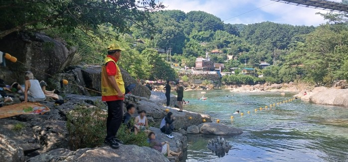 특히 하천과 계곡 등 물놀이객이 집중되는 지역 내 위험구역 8개소(산동 2, 산내 6)에는 총 30명의 안전관리요원을 배치해 ▲위험요소 예찰 ▲비상 시 대피유도 ▲상황보고 등의 임무를 수행하고 있다. 또한, 물놀이객이 많아지는 시간대를 고려해 안전관리요원의 근무시간도 오전 10시부터 오후 7시까지 탄력적으로 운영 중이며, 호우특보 발효 시 물놀이객 통제 및 행동요령을 수시로 교육하고 있다.