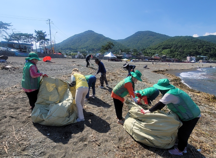 이날 부녀회원들은 자발적으로 참여해 바다에서 떠밀려 온 초목과 폐스티로폼 등 해양쓰레기를 수거하며 구슬땀을 흘렸다.