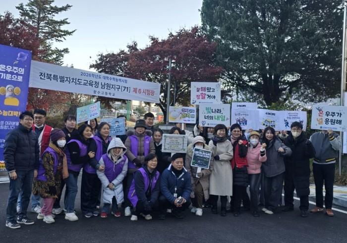 한국여성농업인 장수군연합회(회장 안옥순) 회원 10여 명은 이날 장수고 시험장을 방문해 따뜻한 음료와 핫팩을 직접 전달하며 수험생들에게 힘이 되는 응원의 메시지를 건넸다.