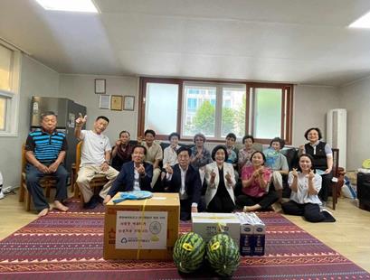 이날 중앙새마을금고에서 준비한 수박 12통, 기정떡 12박스, 선풍기 6대, 건강음료 등이 경로당 6곳에 전달됐으며, 어르신들의 안부도 함께 살폈다.