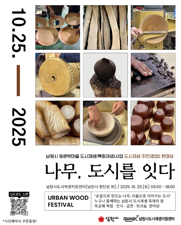 [파이낸셜경제=김예빈 기자] 남원시는 오는 10월 25일 오전 9시부터 오후 6시까지 남원시 도시재생지원센터 일원에서 주변 상권 활성화와 연계한 '남원도시재생 한마당 2025 – Urban Wood Festival'을 개최한다.