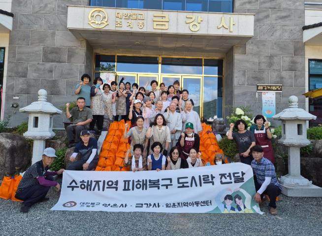 이번에 전달된 도시락은 수재민들의 건강과 심신 회복을 고려해 따뜻한 밥과 다양한 반찬, 신선한 과일 등으로 구성됐으며, 금강사·영은사 신도들이 한마음으로 직접 식재료를 손질하고 조리·포장해 마련했다.