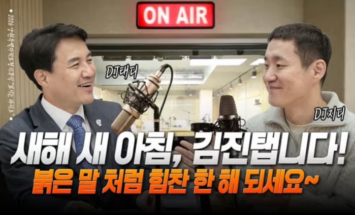 김 지사는 이날 도청 본관 소회의실에서 진행된 라디오에서 “취임 이후 매년 시무식을 이렇게 라디오로 진행하고 있다”며, “1년 만에 디제이 태디로 돌아왔다”고 인사했다.