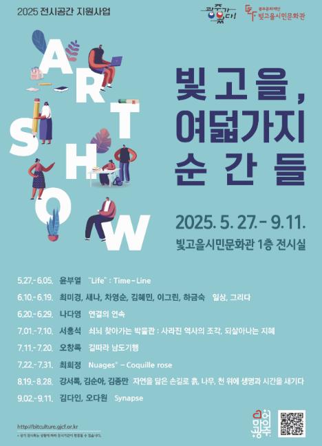 ‘전시공간지원사업’은 광주지역 예술인 및 예술단체가 창작활동을 활발히 펼칠 수 있도록 전시 공간을 무상으로 제공하고 다양한 전시 기회를 확대하는 사업이다. 이번 6회차 전시는 지역 예술인들에게 안정적인 전시 공간을 지원하여 창작활동의 폭을 넓히고, 시민들에게도 다양한 문화예술 향유 기회를 제공할 예정이다.