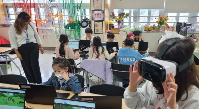 ▲'AR+VR' 수업은 5~6학년을 대상으로 ‘AR+VR기기와 소프트웨어를 활용하여 가족과 함께하고 싶은 휴가 계획하기’, ‘가족과 관련된 기념일 알아보기’ 등의 활동이 진행된다.