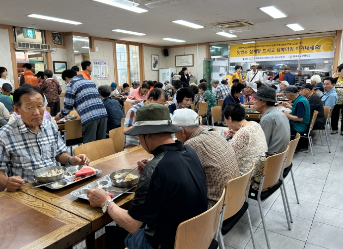 이번 효도급식은 초복을 맞아 어르신들의 건강한 여름나기를 기원하며 삼계탕과 수박으로 구성된 식사를 제공했다.