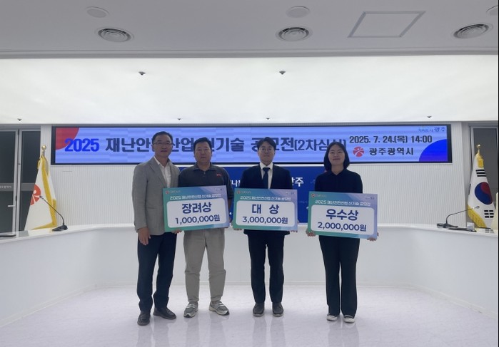 광주광역시는 ‘2025 재난안전산업 신기술 공모전’을 통해 발굴한 우수기술 3개를 선정, 시상했다고 25일 밝혔다.