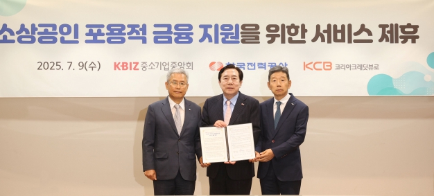 한전은 중소기업중앙회, KCB와 7월 9일 여의도 중소기업회관에서 경영위기를 겪고 있는 금융 취약계층 소상공인 지원을 위한‘포용적 금융지원 서비스 제휴 협약'을 체결했다.