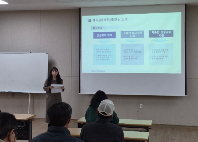 [파이낸셜경제=김영란 기자] 제주금융복지상담센터(센터장 부성진)는 2월 3일 서귀포오름지역자활센터를 방문해 자활근로 참여주민을 대상으로 금융복지 상담 안내 및 교육을 실시했다고 밝혔다.