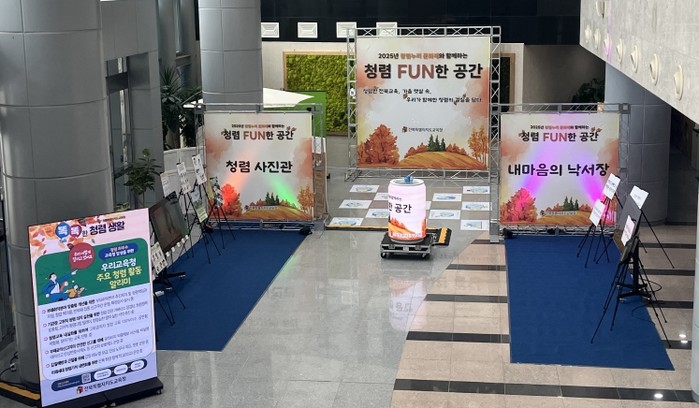 전북교육청은 본청 1층 현관에 ‘청렴 펀(Fun)한 공간’을 조성, 직원과 방문객들이 자유롭게 참여할 수 있는 청렴 테마 체험형 프로그램을 오는 26일까지 운영한다.