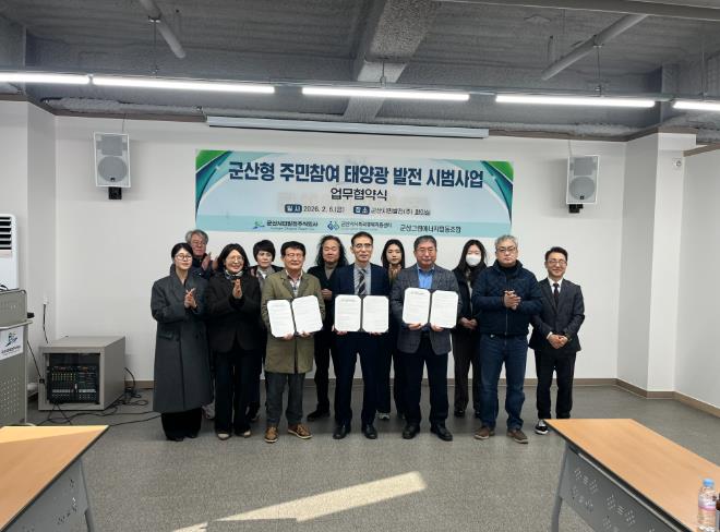 [파이낸셜경제=김예빈 기자] 군산시 재생에너지 사업 전담 기관인 군산시민발전주식회사이 2026년 역점사업인 ‘군산형 주민참여 태양광 발전 시범사업’ 본격 추진에 나섰다.