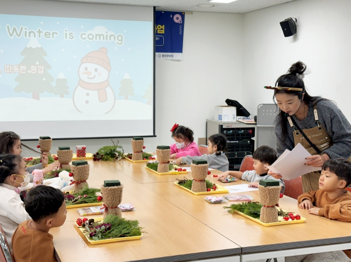 이번 플라워아트 강좌는 함양에서 ‘쟈뎅드마망’을 운영 중인 전문 강사를 초빙해 총 4회차로 진행 중이며 특히 유아 참여 수업을 포함해 높은 관심과 호응을 얻었다.