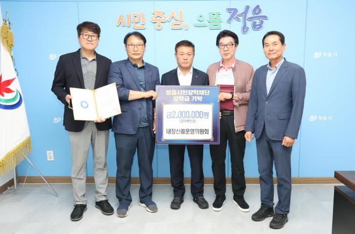 내장산콜운영위원회는 14일 정읍시청을 방문해 지역 인재 육성을 위한 장학금 200만원을 정읍시민장학재단에 기탁했다.