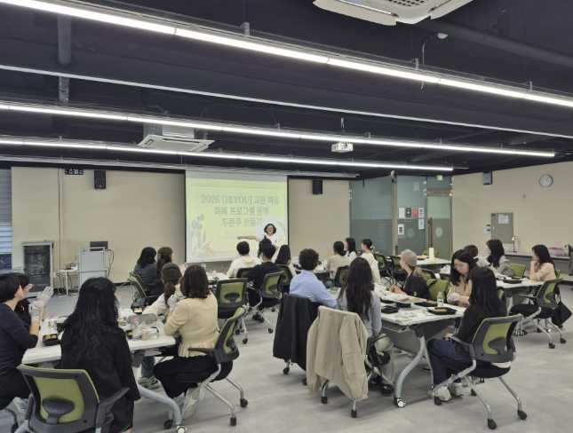 [파이낸셜경제=김기보 기자] 동두천양주교육지원청는 4월 23일, 관내 교원을 대상으로 ‘[I&YOU] 교원마음회복 프로그램(두쫀쿠 만들기)’ 2차 연수를 운영했다. 해당 연수는 교원의 정서적 안정과 자기 회복력 증진을 통한 심리적 소진을 예방, 교원의 심리·정서적 치유를 통해 교직 만족도 및 직무 몰입도를 제고하는 것을 목표로 한다. 이번 연수는 지난 주 1차 연수에 이어 2차로 양주교육지원센터에서 운영했다. 대상은 전년도 교육활동 침해 피해교원 및 위기사안 발생교 교원, 직무 관련 스트레스 교원 등을 대상으로 교원의 마음 회복을 지원하기 위해 맞춤형 힐링 프로그램을 제공했다.