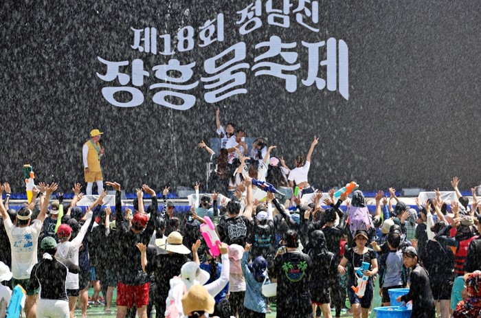 [파이낸셜경제=김예빈 기자] 1일 장흥 물축제를 찾은 관광객들이 시원한 물줄기를 맞으며 무더위를 식히고 있다. ‘장흥은 지금 즐거움이 콸콸콸!’이란 슬로건으로 열린 올해 물축제는 8월 3일까지 탐진강과 편백숲 우드랜드 일원에서 펼쳐진다.