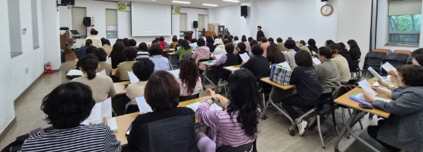 | ▲ 생활지원사들이 방문의료 지원사업 홍보 및 안내 교육을 듣고 있다. |
