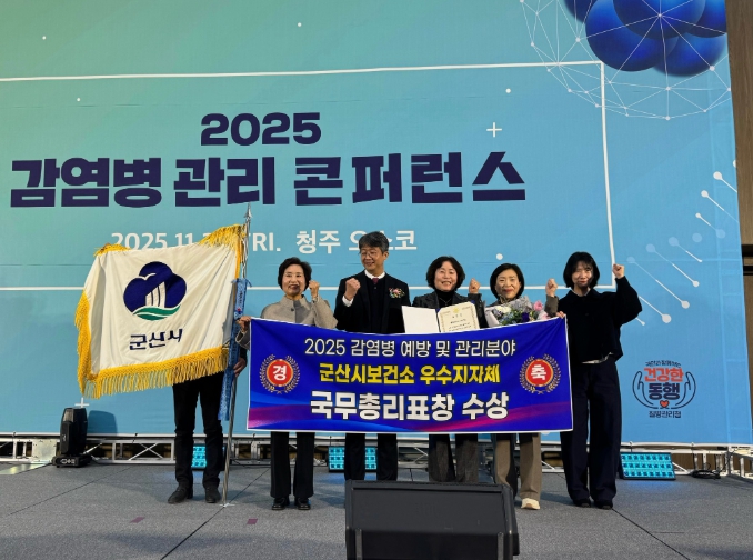 [파이낸셜경제=김예빈 기자] 군산시가 질병관리청이 주최한 ‘2025년 감염병관리 콘퍼런스’ 에서 '2025년 지자체 감염병 예방·관리 업무 평가' 우수지자체로 선정되어 국무총리표창을 수상했다.