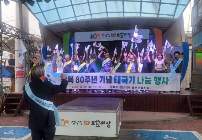 [파이낸셜경제=김예빈 기자] 광복회 전라남도지부 중부연합지회(회장 양동철)는 광복 80주년을 맞아 장흥 장날인 12일 장흥 토요시장 일원에서 태극기 나눔 행사를 개최했다.