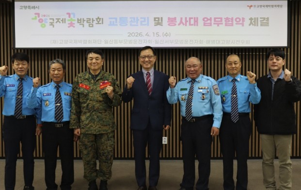 [파이낸셜경제=김기보 기자] (재)고양국제박람회재단이 지난 15일 일산동·서부모범운전자회, 해병대고양시전우회와 함께 일산호수공원 고양꽃전시관에서‘2026고양국제꽃박람회 교통관리를 위한 업무협약’을 체결했다.