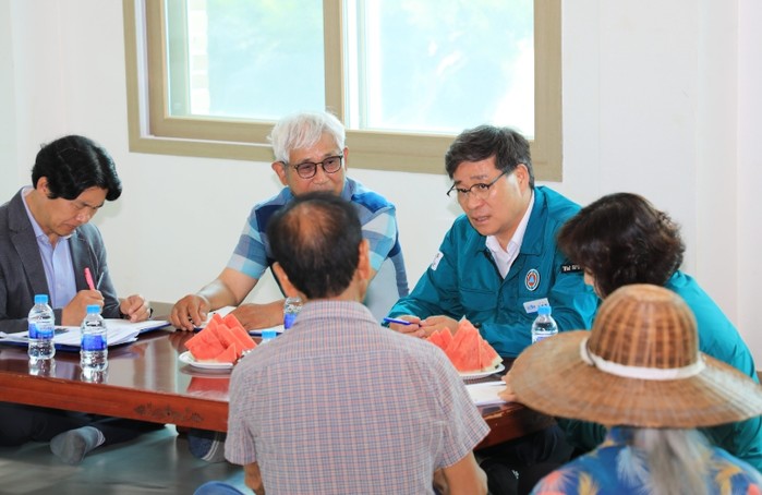 이날 간담회에서 진 군수는 온열질환 예방 행동 요령을 직접 안내하고 무더위에 취약한 어르신들의 건강과 안부를 살피는 등 소통의 시간을 가졌다.